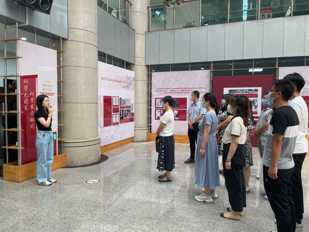 跟随着活动讲解员李卓凡老师的引导和讲解步伐,按照“胸怀祖国 服务人民”“勇攀高峰 敢为人先”“追求真理 严谨治学”“淡泊名利 潜心研究”“集智攻关 团结协作”“甘为人梯 奖掖后学”的展区顺序,大家时而驻足观看、时而互相讨论,在参观学习中深刻感受到近代以来特别是新中国成立以来,在中国共产党的正确领导下,一代代科技工作者胸怀中华民族伟大复兴梦想,甘于寂寞,深深扎根于不同领域,为中国的发展腾飞做出了不可磨灭的贡献。