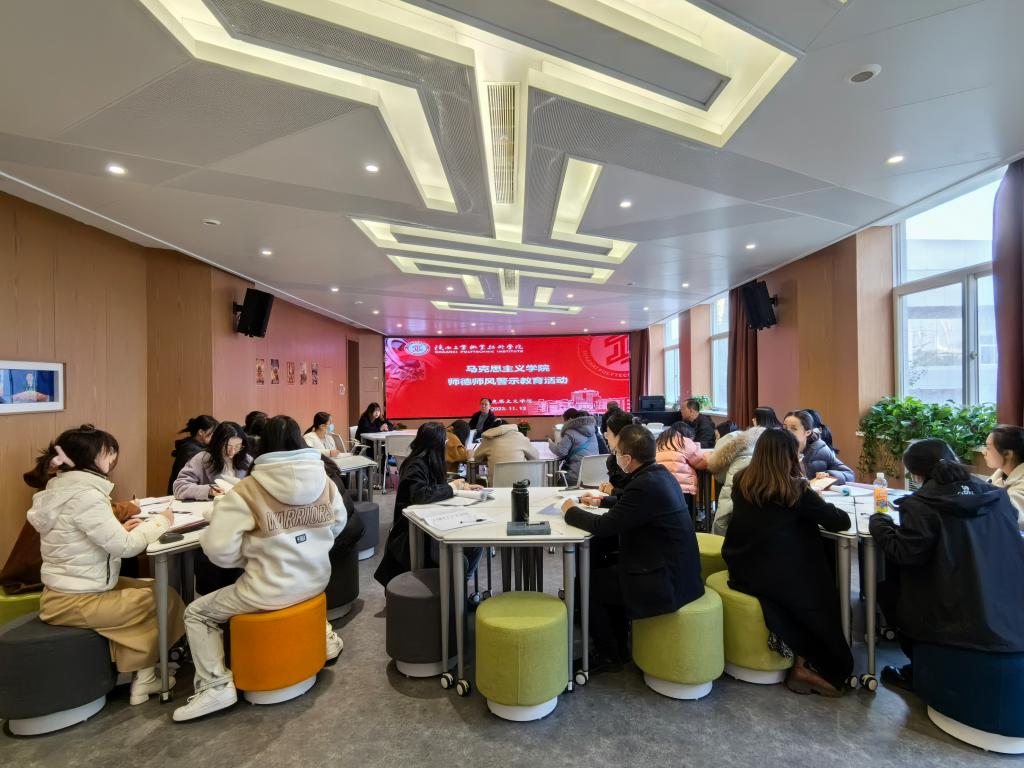 按照党委教师工作部关于开展师德师风警示教育活动的通知要求,11月13日下午,马克思主义学院党总支组织部门全体教师在VR智慧思政实训中心召开了师德师风警示教育活动。会议由马院副院长、第一党支部书记王辉主持。