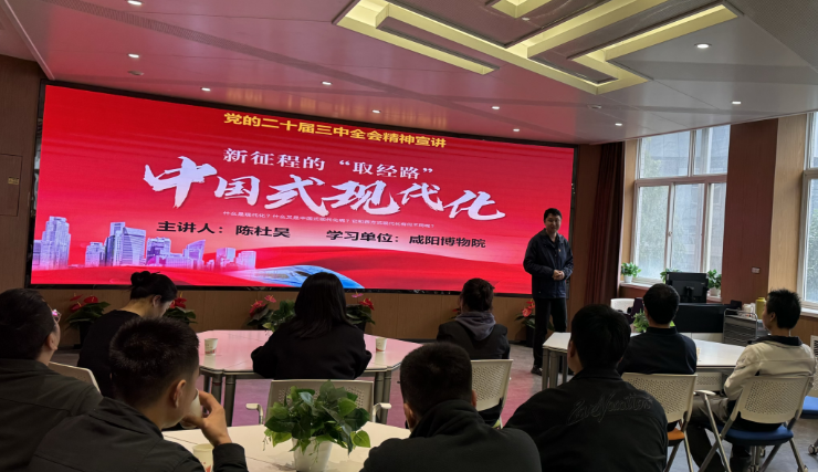 2024年11月1日,马院教师陈杜昊以《新征程的“取经路”:中国式现代化》为题,向咸阳博物院党支部宣讲党的二十届三中全会精神。