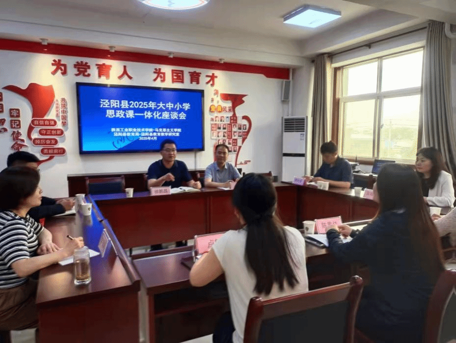 2025年4月30日上午,陕西工业职业技术学院马克思主义学院副院长王辉带领学院实训中心主任陈杜昊、思政课教师代表吴晓翠等一行三人,专程赴泾阳县开展思政课教学研讨活动。泾阳县教育局教研室主任徐鹏昌、副主任马新热情接待了来访团队,同时参加座谈的还有泾阳县高中名师工作室主持人卢敏、小学名师工作室主持人王娜,以及味经中学优秀思政课教师代表陈思佳等。