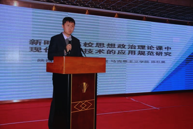 (我院获奖教师陈杜昊在会上作经验交流)