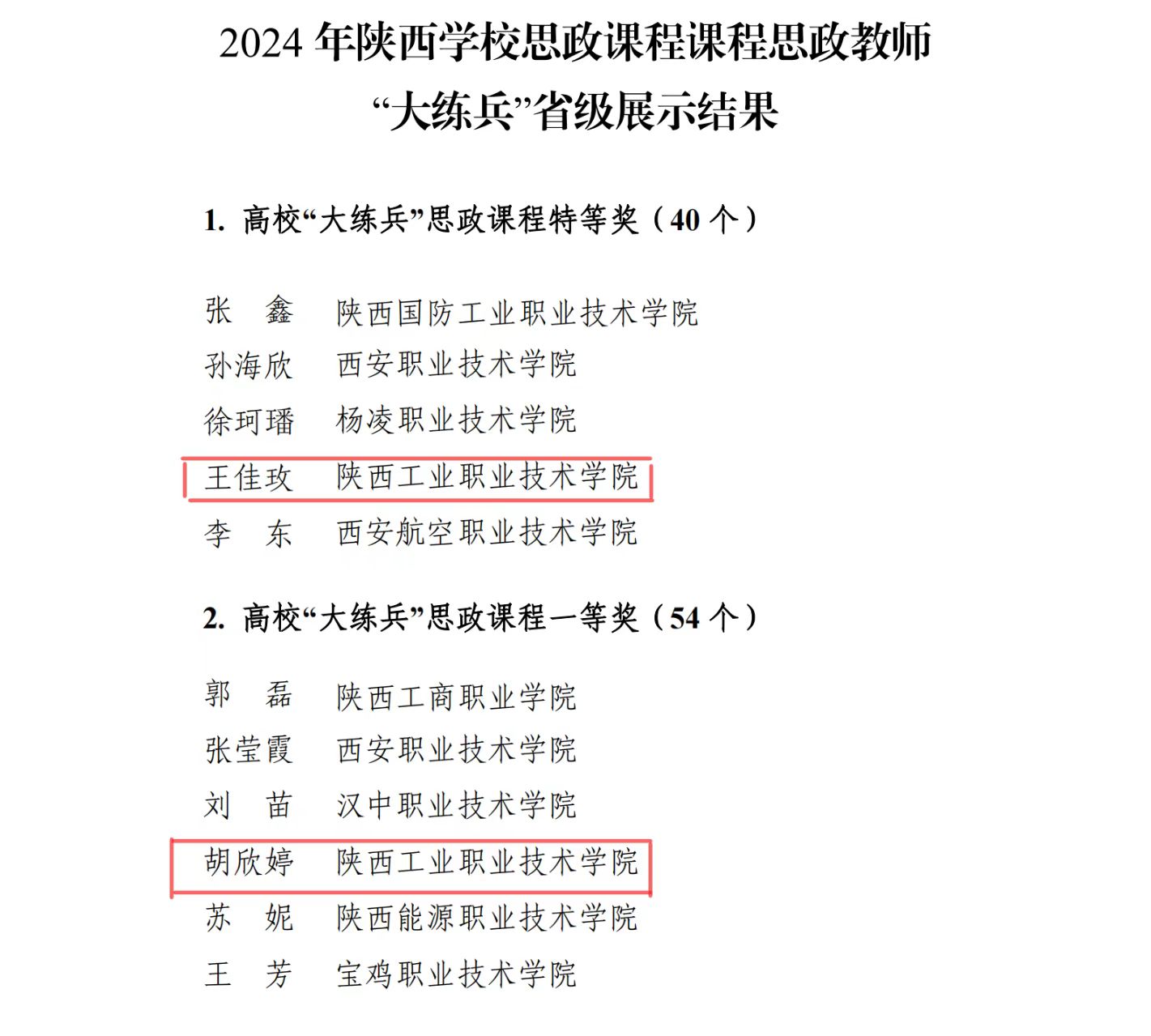 1月4日,2024年度陕西高校思政课教师“大练兵”省级展示活动获奖名单公布,我校获特等奖1项、一等奖1项。