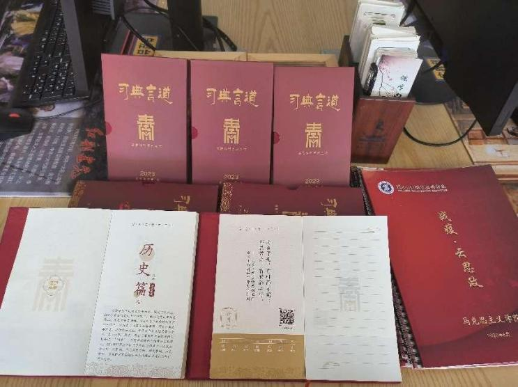 “秦马小匠”红色文创设计从2020年首届征集至今,已经累计收到300余份作品和设计稿,已经形成16个系列4000余份红色文创产品。以《习典言道》台历的设计为例,学生选取《习近平用典》中关于修身、历史、辩证、任贤、创新、廉政六篇53处用典内容,学生通过朗读录音、二维码分享的形式实现文字与音频的内容结合。打开台历,每周不仅可以学习习近平用典的释义与出处,更能通过微信“扫一扫”直接听到学生的有声朗读。让自己设计的台历、朗读的声音展示出来,不仅鼓励了学生再次投入创作,也形成了“设计有引导-制作有指导-产品有鼓励”的教育闭环。