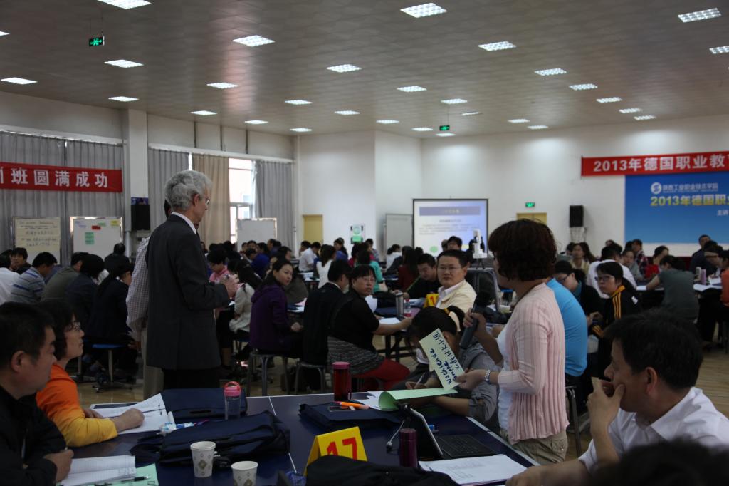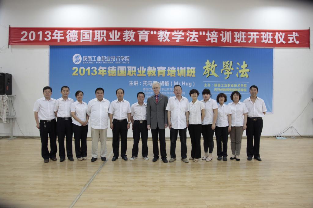 5月28日—5月31日,我院思政部11名教师参加了由德国职业教育专家托马斯·胡格教授(Mr.Hug)主讲的“陕西工业职业技术学院2013年度德国职业教育教学法培训班”,体验了德国先进的教育理念和教学方法。参加这次培训,为我院教师近距离接触德国先进的职业教育理念、学习教学法提供了机会。