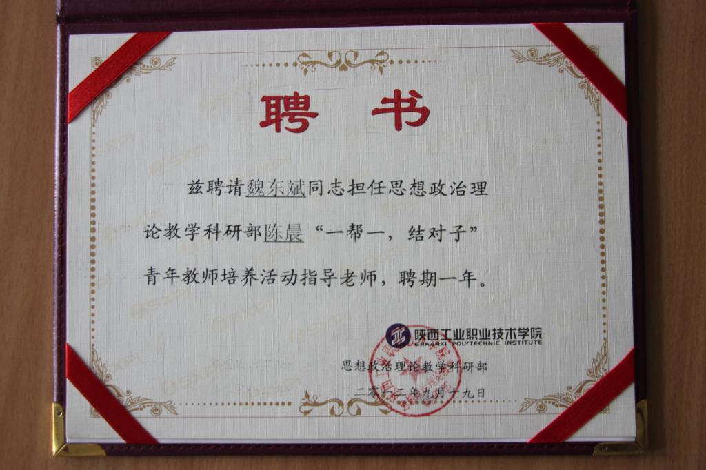 思政部“一帮一,结对子”青年教师培养导师聘书