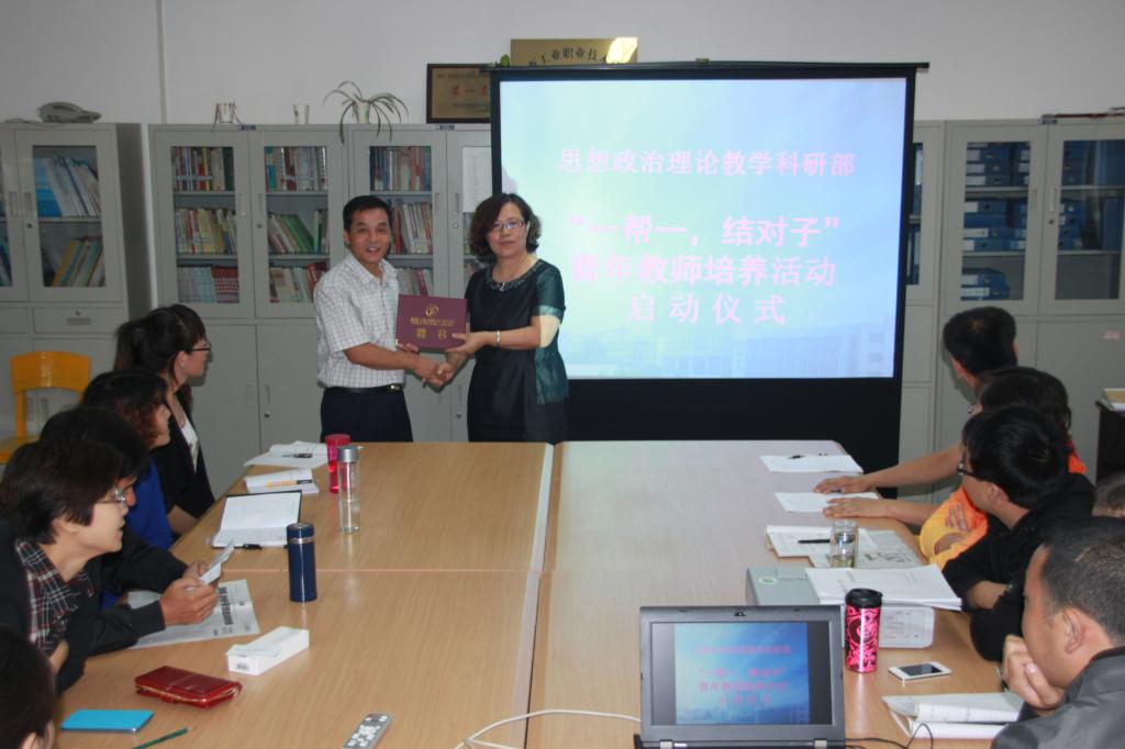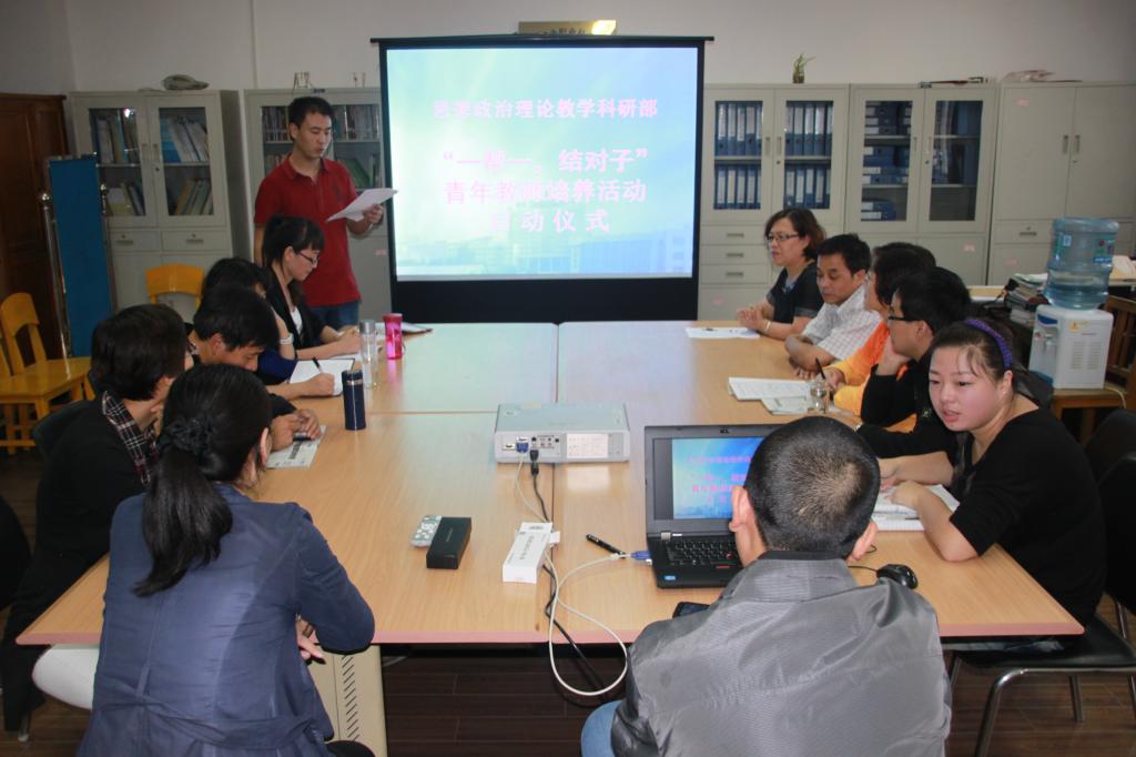 为了切实加强青年教师培养,提升思政教师队伍整体素质,进一步适应思政想政治理论课教育教学改革和发展的需要,按照学院领导、人事处、教务处关于青年教师培养工作的指导意见,继2010年、2012年相继启动的思政部青年教师培养工程之后,9月23日下午,思政部利用周一教研活动时间,举办“一帮一,结对子”拜师会,再次启动2013年青年教师培养工程。