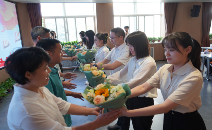 青年教师依次向各自的指导教师献花