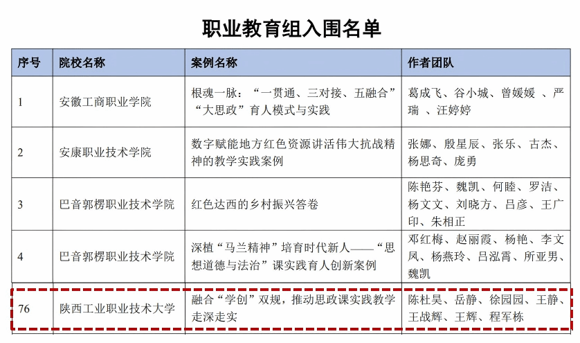 此次入选,既是学校长期扎实推进思政课建设、深耕实践育人成果的体现,也为持续深化“大思政课”建设提供了有益参考。学校将以此为契机,全面总结推广“实地研学+艺术演绎”双轨融通的思政实践教学模式,整合地方优质红色教育资源,持续拓展实践育人场景,深化“大思政课”改革创新,不断提升铸魂育人实效。