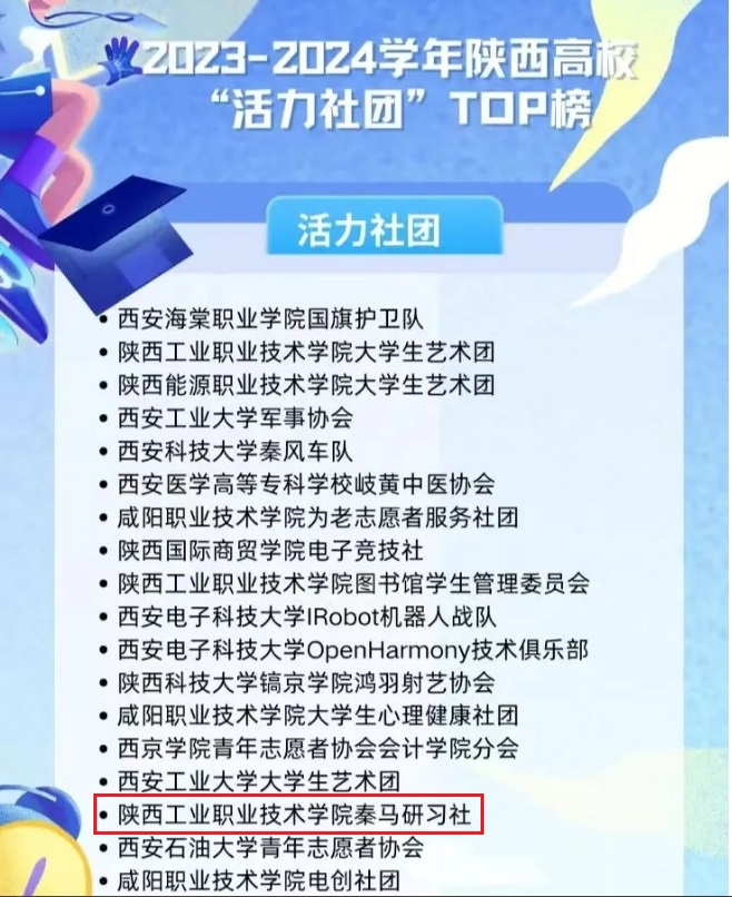 为深度激发高校学生社团活力,充分发挥学生社团育人功能,集中展现高校学生社团改革建设成果和典型经验,近日,在团中央基层建设部指导,中国青年报主办的2023-2024学年高校“活力社团”风采展示活动中,我院秦马研习社入选陕西高校“活力社团”TOP100。